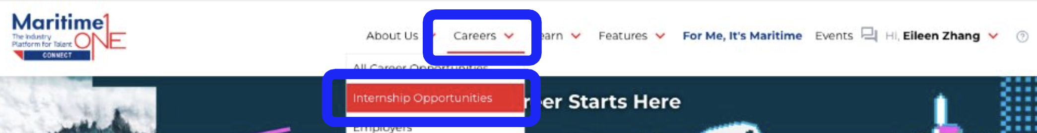 - Click Careers, then select Internship Opportunities.