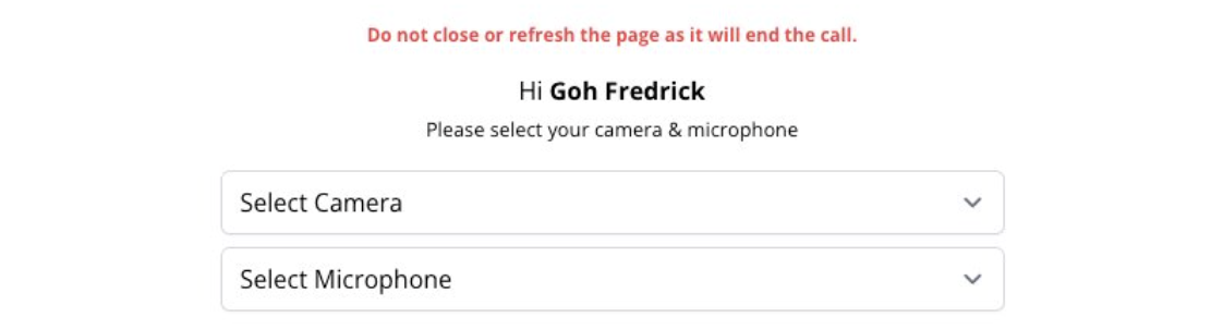 - If this is your first time accessing this page, a pop-up will appear requesting access to your camera and microphone.